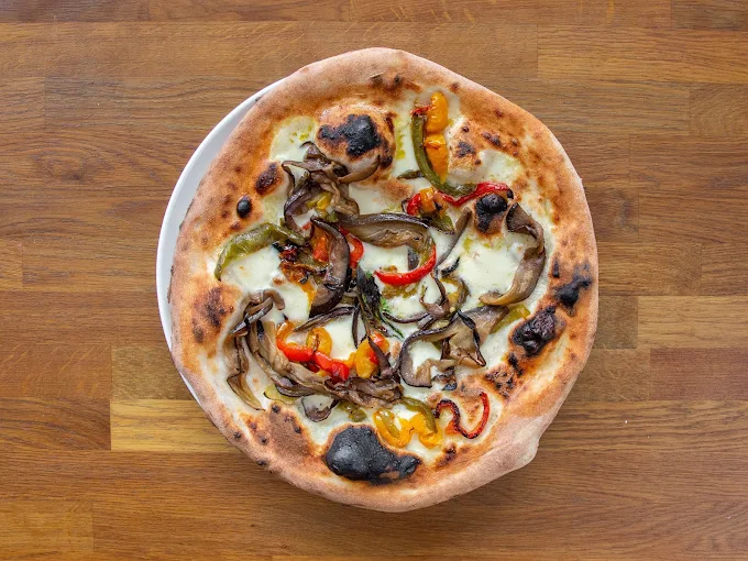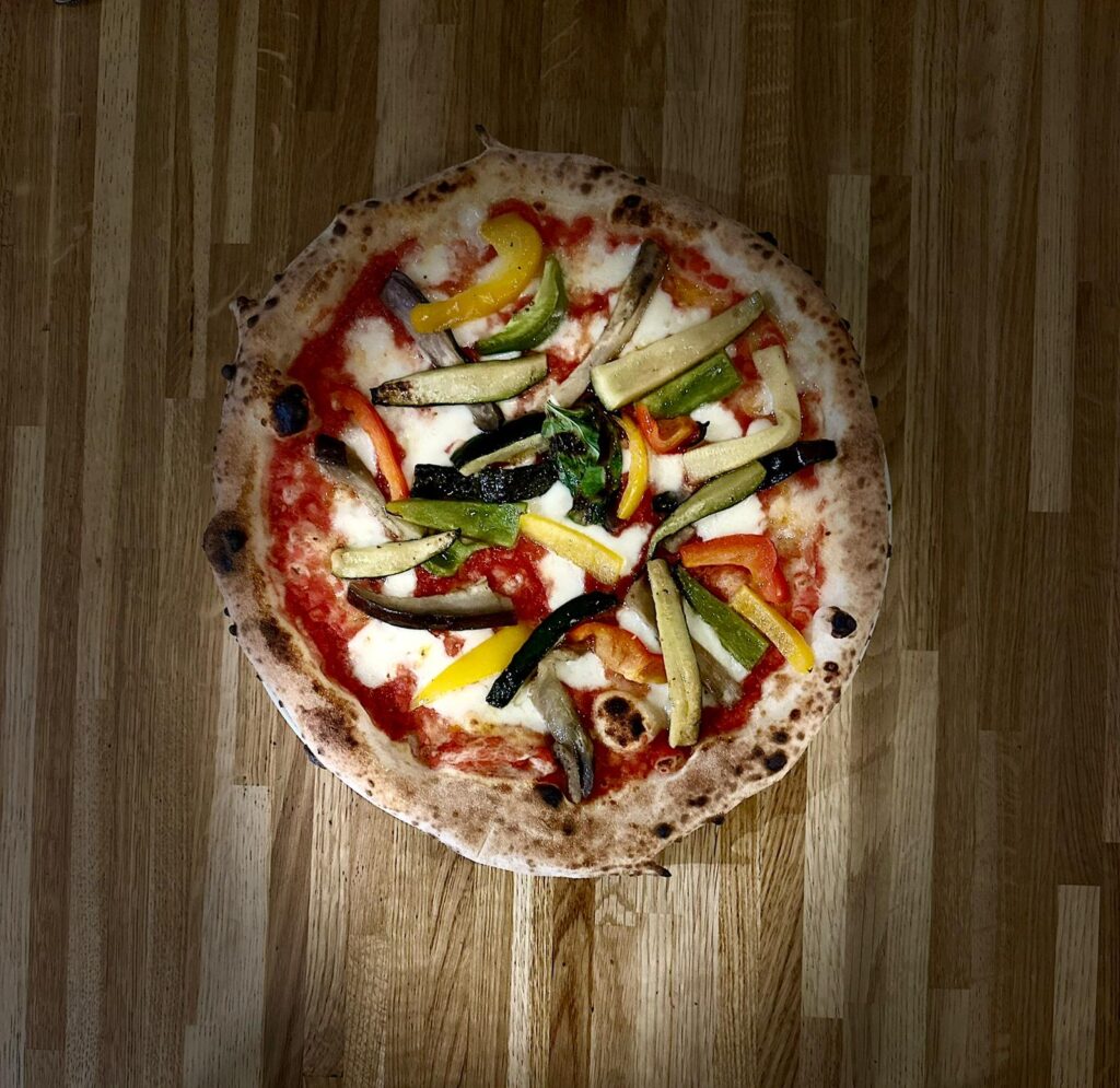 Fior di latte Mozzarella, peppers, aubergine, basil courgette, crushed tomatoes, extra virgin olive oil